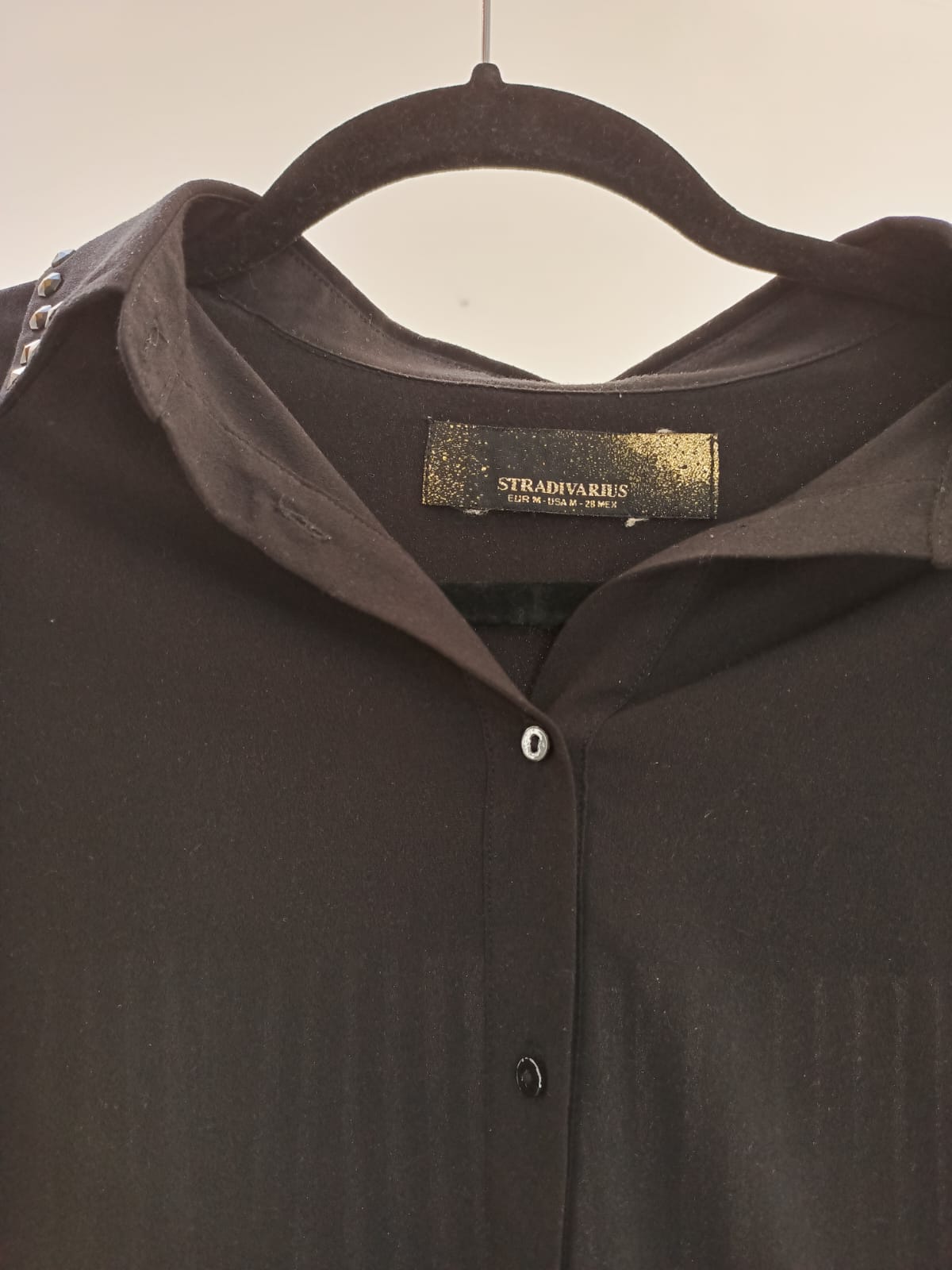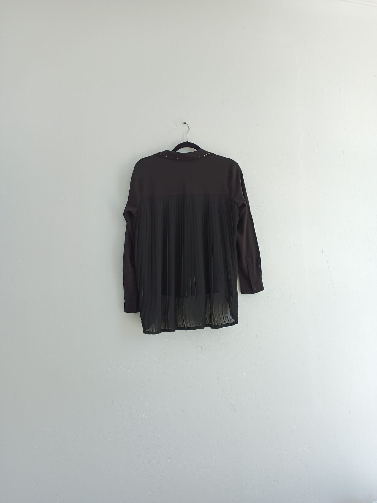 Camisa negra con taches en el cuello con prensas en la parte de la espalda
