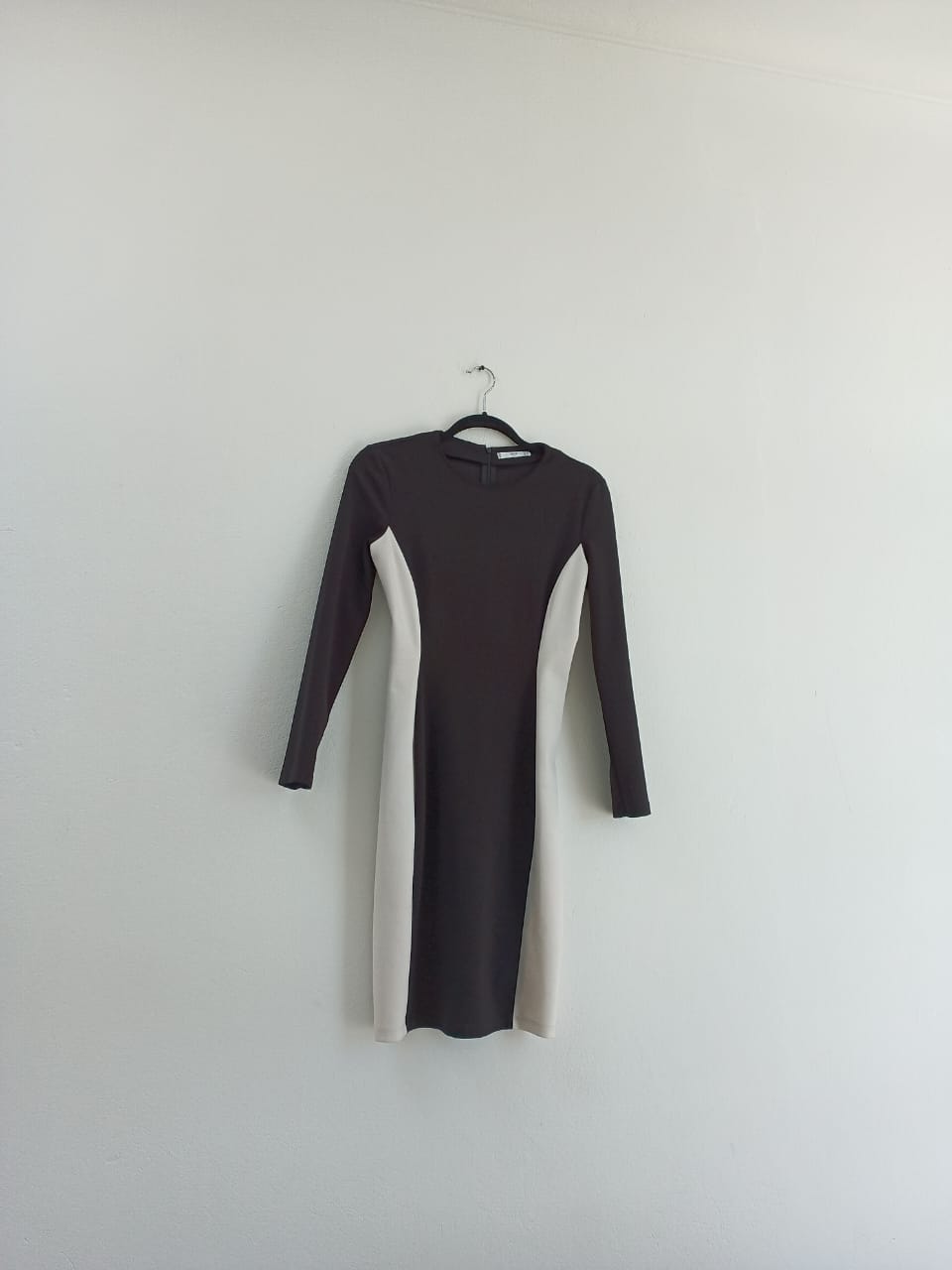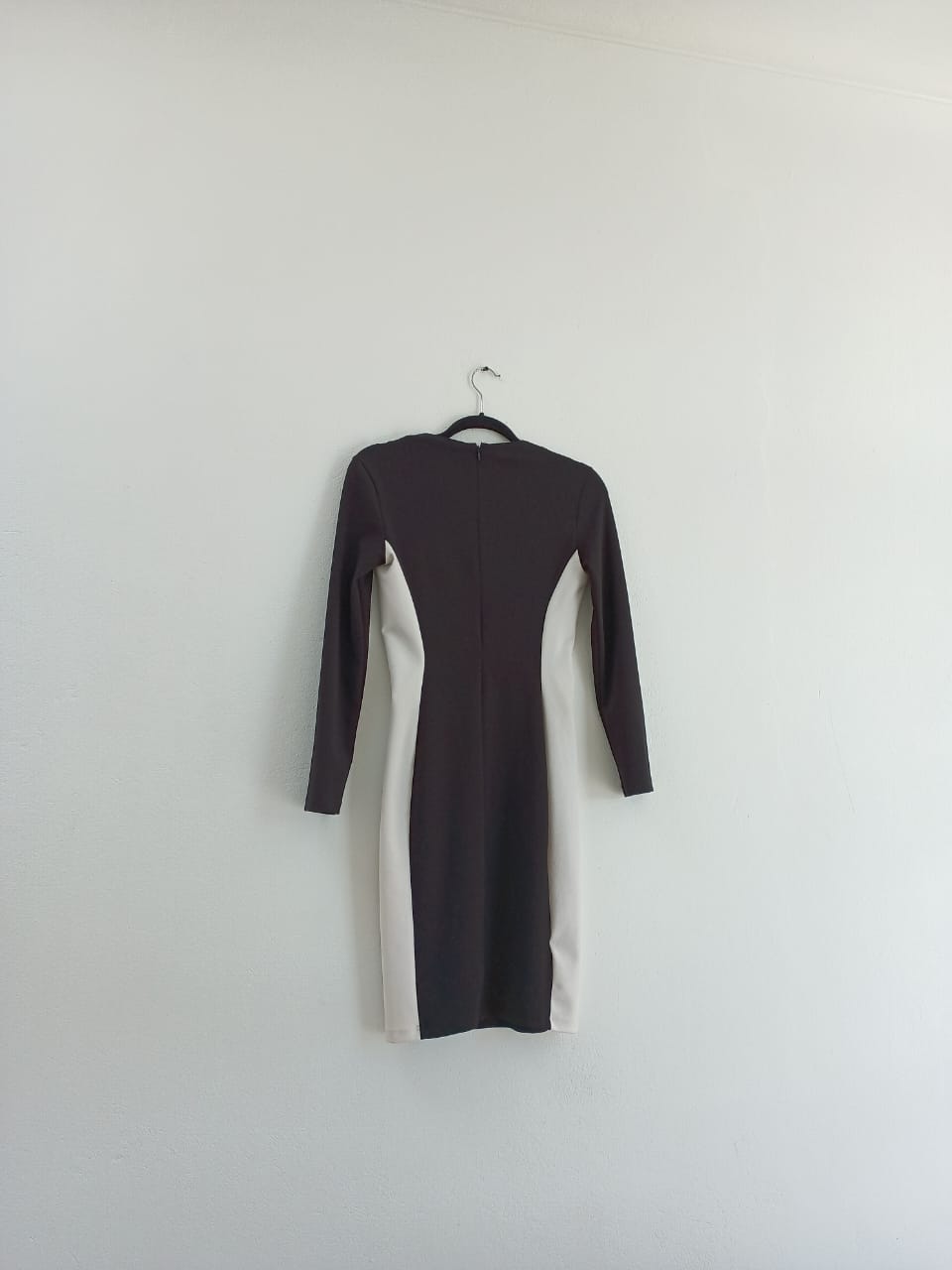 Vestido blanco y negro ajustado al cuerpo, horma divino cuenta con cierre en la espalda.